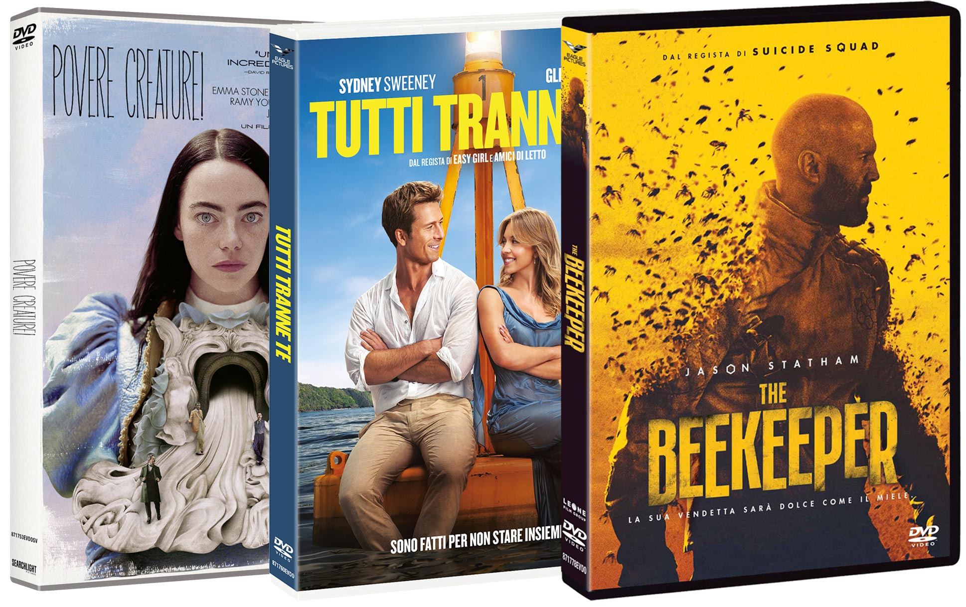 Nel mese di Aprile 2024, con Eagle Pictures escono in homevideo: The Beekeeper di David Ayer, Povere creature! di Yorgos Lanthimos, Tutti Tranne Te di Will Gluck, One Life di James Hawes con l'aggiunta di, per la prima volta in 4k Ultra HD, True Lies e The Abyss di James Cameron. Con Plaion Pictures escono: Ultimo Mondo Cannibale in Limited Edition 4K UHD+2 Blu-ray; Mean Girls (2024) in DVD, Blu-ray e 4K UHD + Bluray; Mean Girls (2004) in Steelbook 4K UHD; Schegge di paura in 4K UHD + Blu-ray; Jack Ryan di Tom Clancy - L'ultima stagione in DVD; The Truman Show in 4K UHD + Blu-ray; Foglie al vento in DVD e Blu-ray; Perfect Days in DVD e 4K UHD + Blu-ray; Dracula 3D in Limited Edition 4K Ultra HD + Blu-ray.