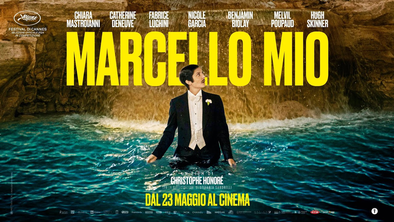 Lucky Red porta nei cinema italiani Marcello mio di Christophe Honoré, a pochi giorni dalla presentazione in concorso al 77esimo Festival di Cannes: uscirà nelle sale in versione originale il 23 maggio. Prima però, sono state programmate delle anteprime in tutta Italia il 21 maggio con proiezione del red carpet di Cannes.