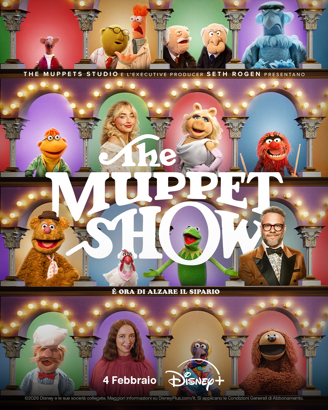 Disney+ presenta The Muppet Show, evento speciale disponibile in piattaforma da mercoledì 4 febbraio 2026 e che vede la partecipazione di Kermit, Miss Piggy e gli amati Muppet insieme a guest star come Maya Rudolph, Sabrina Carpenter e Seth Rogen.