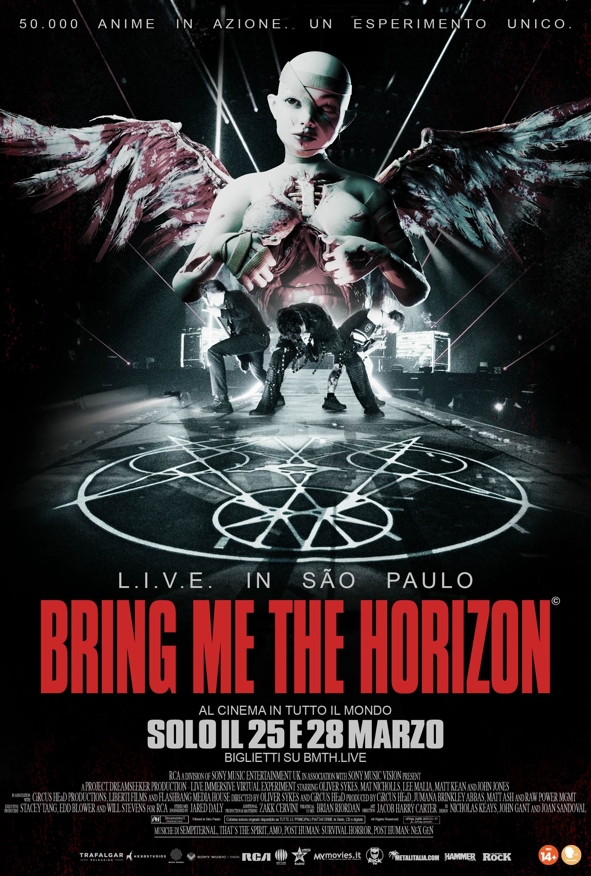 • Bring Me The Horizon: L.I.V.E. in São Paulo (Live Immersive Virtual Experiment) debutta nei cinema di tutto il mondo solo per due giorni, il 25 e il 28 marzo 2026, con biglietti in vendita dall'11 febbraio alle ore 15.00.