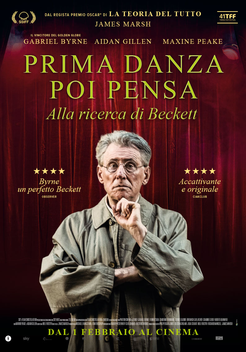 Prima danza, poi pensa. Scoprendo Beckett è il biopic diretto da James Marsh che racconta la storia, i successi, gli amori, le amicizie e gli aspetti meno noti del gigante della letteratura Samuel Beckett, una delle figure più rivoluzionarie e influenti del Novecento, autore di lavori come Aspettando Godot, Giorni Felici e Finale di Partita. Partendo dalla "catastrofica" vittoria del Premio Nobel per la Letteratura nel 1969, Beckett rievoca gli eventi salienti della sua vita in un dialogo immaginario con la personificazione della sua coscienza, lasciando emergere i temi e le riflessioni che hanno reso grandi le sue opere. Ne risulta un ritratto poco conosciuto della sua personalità: buongustaio, solitario, marito infedele, combattente della Resistenza francese e anche grande amico di James Joyce.