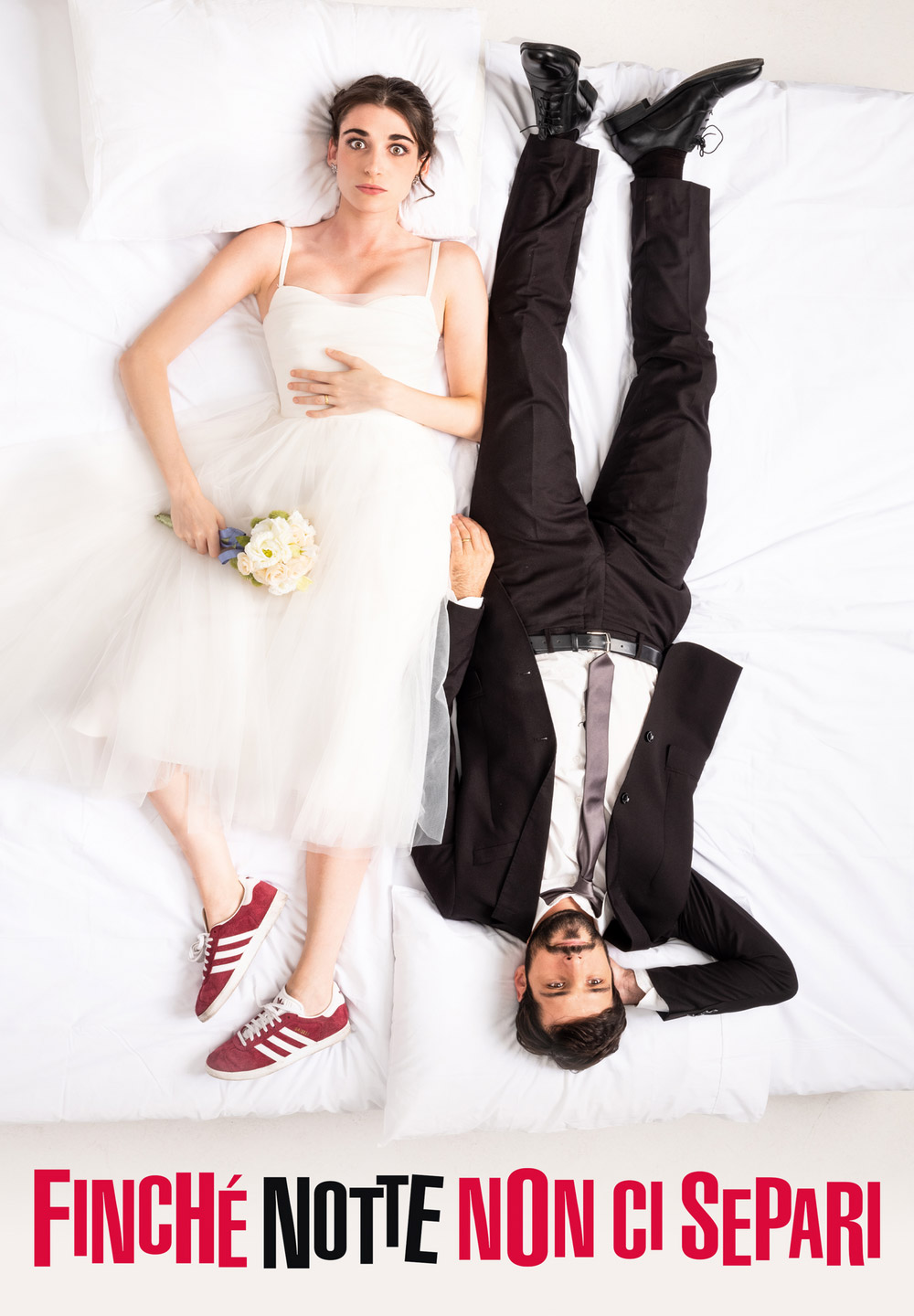 La carta vincente della pellicola cui è ispirato era senza dubbio la sua freschezza, la sua ingenuità - o presunta tale - e soprattutto la capacità di toccare con mano lieve ma sapiente il tema del rapporto di coppia, se non proprio dell'amore: è vero - di film su questo argomento se ne fanno e se ne sono fatti da quando il cinema è stato inventato - ma sappiamo tutti che sullo schermo non conta tanto il cosa, quanto il come. Ecco, noi produttori ci siamo innamorati proprio del come, e ci siamo chiesti se fosse possibile trasportare questa storia agrodolce nella realtà italiana, anzi romana, mantenendone pregi e spirito scanzonato. In tutta onestà, ci sembra che la mano attenta del regista Riccardo Antonaroli, la scrittura arguta degli sceneggiatori e la fotografia di Federico Annichiarico abbiano centrato l'obiettivo. Ne è venuto fuori un prodotto popolare e di qualità, una commedia allegra e malinconica nello stesso tempo, che invita a nozze - è il caso di dirlo - i due protagonisti, Pilar Fogliati (Eleonora) e Filippo Scicchitano (Valerio), coppia affiatata e scoppiettante, convincenti al punto da farci sentire anche nostri i loro patimenti d'amore. Intorno a loro si muovono personaggi da commedia vera e propria: i genitori di Valerio, Lucia Ocone e Giorgio Tirabassi; il tassista minaccioso Francesco Pannofino; il cameriere misterioso Armando de Razza; gli ex fidanzati dei due sposini, Neva Leoni e Claudio Colica. Una scoppiettante cornice ai temi di riflessione che la storia mette a fuoco: le relazioni dei ragazzi al giorno d'oggi, il senso del matrimonio e la difficoltà di convivere con le proprie emozioni in una società che va sempre più veloce. Non a caso si svolgerà tutto in una notte, e solo all'alba scopriremo il destino di queste due anime. Staranno insieme per sempre? Finché notte non ci separi.