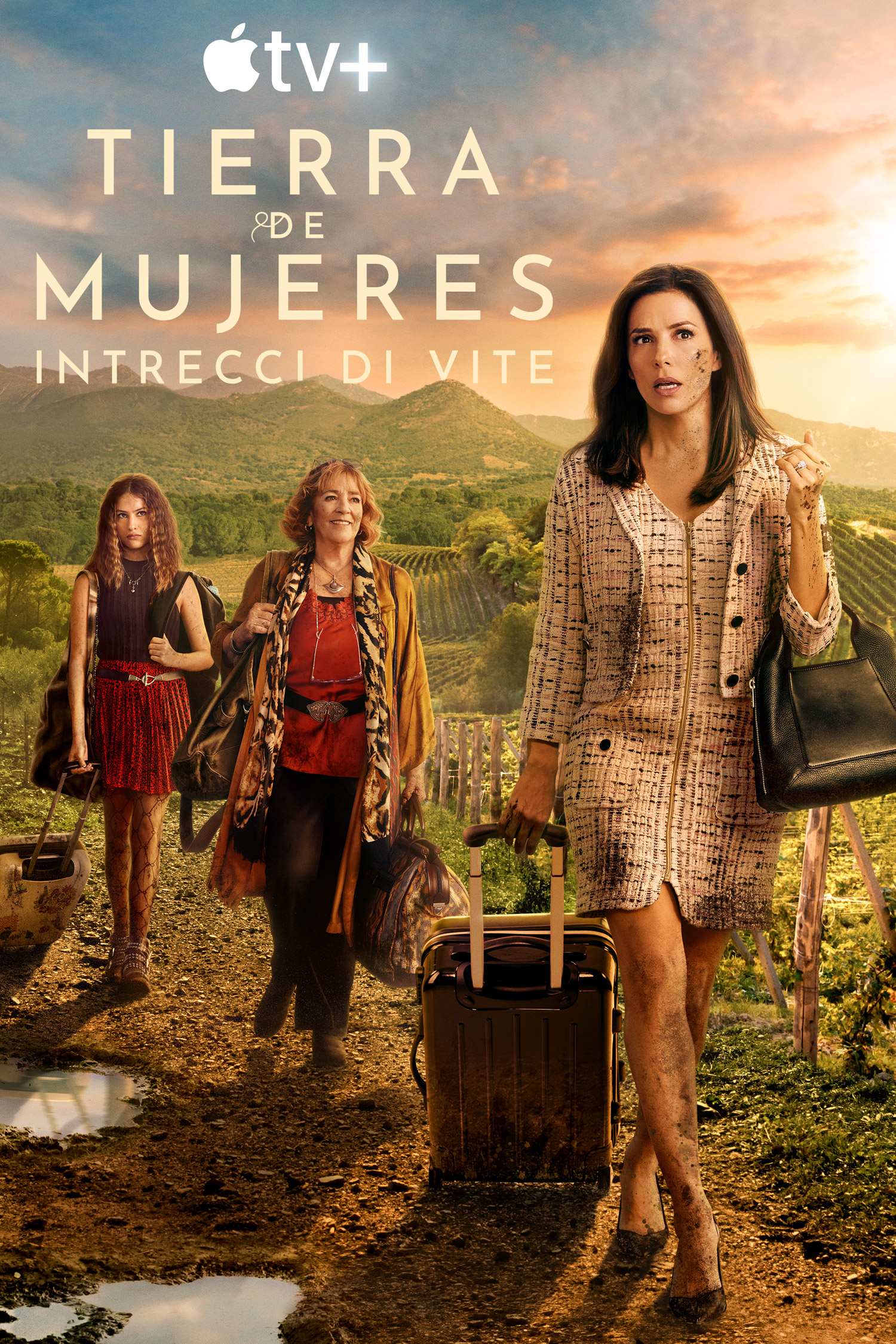 Tierra de mujeres - Intrecci di vite è una dramedy con Eva Longoria nel ruolo di Gala, una donna newyorkese la cui vita viene sconvolta quando il marito coinvolge la famiglia in illeciti finanziari e lei è costretta a fuggire dalla città insieme all'anziana madre e alla figlia, studentessa al college. Per sfuggire ai pericolosi criminali con cui il marito di Gala, ora svanito nel nulla, è in debito, le tre donne si nascondono nella stessa incantevole cittadina vinicola nel nord della Spagna da cui la madre di Gala era fuggita 50 anni prima, giurando di non tornare mai più. Le donne cercano di ripartire da zero e sperano che le loro identità restino sconosciute, ma le voci nella cittadina girano rapidamente, svelando i segreti e le verità più profonde della loro famiglia.